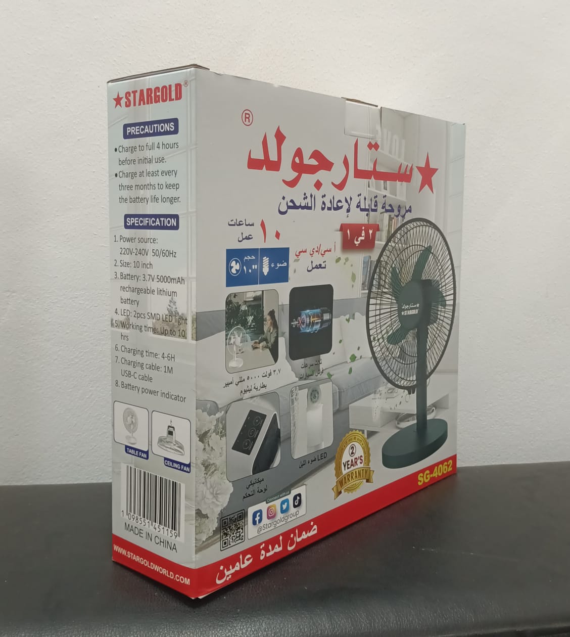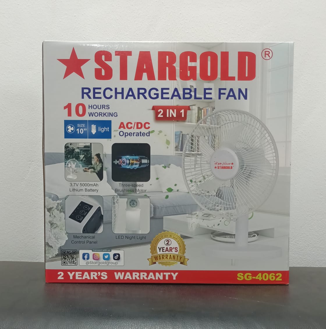 STARGOLD RECHARGEBLE FAN 10 INCH AC/DC 2 IN 1